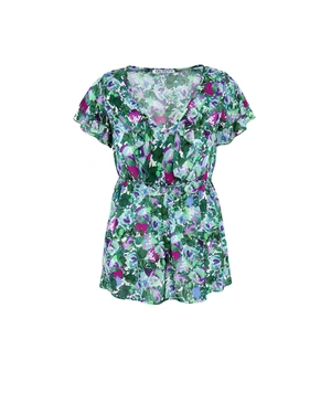 Блуза с V-деколте, къс ръкав с волани, с висока талия, подчертана с ластик, от 100% район