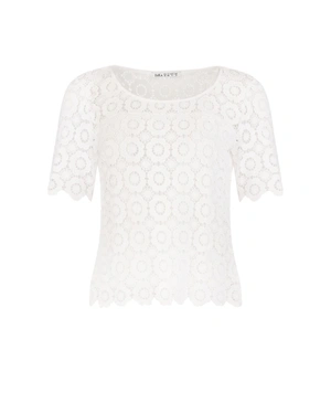 Елегантен модел с къс ръкав, обло деколте и нормално вталяване, изработен от стилен тъкан памук с английска бродерия. Блузата има подплата.