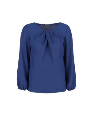 Модел с дълъг ръкав, обло деколте, с набор и нормално вталяване