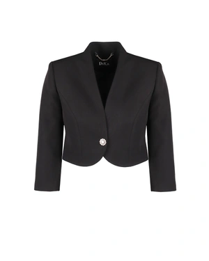 Вталено сако тип болеро, с дълъг ръкав, V-деколте, без ревери, закопчава се с едно копче, с подплата