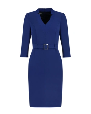 Вталена рокля със 7/8 ръкави, с V-деколте с изрязан детайл, с текстилен колан с катарама и с подплата
