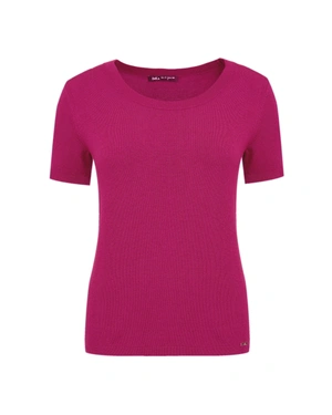 Елегантен модел с обло деколте, къс ръкав и нормално вталяване, със съдържание на вискоза в състава
