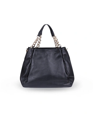 Модел от мека естествена кожа, с две къси дръжки с метални елементи тип верига и допълнителна дълга дръжка, която позволява да се носи на рамо, с вътрешен джоб с цип и отделение за мобилен телефон, размери 33х16х28 см