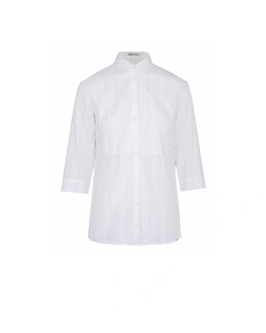Класически модел от 100% памук, платът е тъкан с текстура, наподобяваща фини дантелени ивици по протежение на ризата.