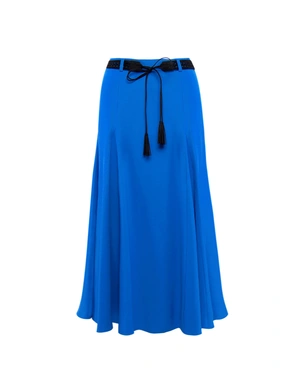 Дълъг модел, с А-силует, с гайки на талията и с текстилен колан тип шнур с пискюли с ресни
