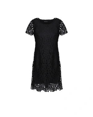 Модел с къс ръкав, обло деколте и нормално вталяване, материята е английска бродерия, роклята е с подлата