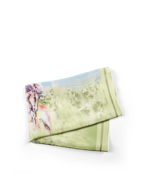Елегантен шал от 100% район, десен тип акварелен пейзаж с кон, размери 70х70 см