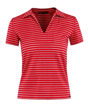 Модел с къси ръкави, с нормално вталяване, яка тип "Джони", с високо съдържание на вискоза в състава и с лурексова нишка