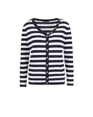Втален модел с райе и V-образно деколте с копчета, които продължават като декорация по бието, с високо съдържание на вискоза