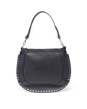 Model in boho style, made of genuine leather, with metal eyelets, with a removable long and short handle, dimensions 20x6x14 cm