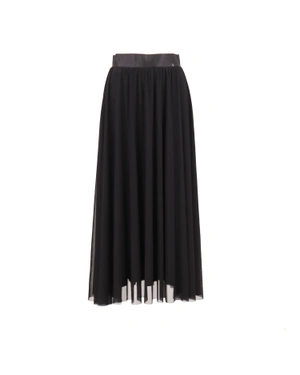 Mid-calf style, in fine mesh fabric, with pleats and viscose lining