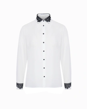 Long sleeve, regular fit shirt, contrast buttons, collar and cuffs with contrast lace details