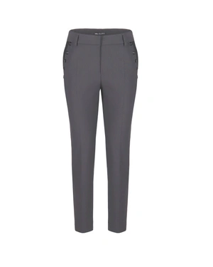 A classic model with a tapered leg, with a crease, with details and decorative buttons on the pockets, the fabric has elasticity