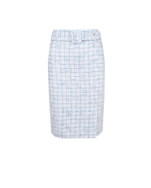 Straight knee-length skirt with textile belt and lurex thread. Can be combined with a matching jacket from the collection.